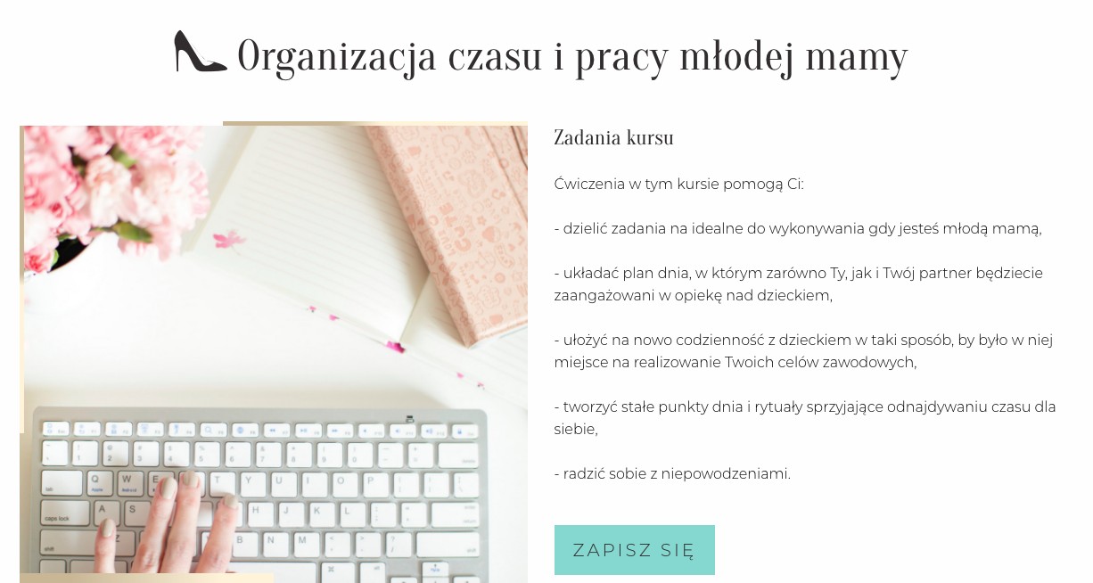 Jeśli jesteś zainteresowana poznaniem większej ilości metod i zasad działania sprzyjających takiemu ułożeniu macierzyństwa, w którym znajdzie się miejsce na realizowanie siebie, swoich pasji i ambicji, zapraszam do przygotowanych przeze mnie kursów!