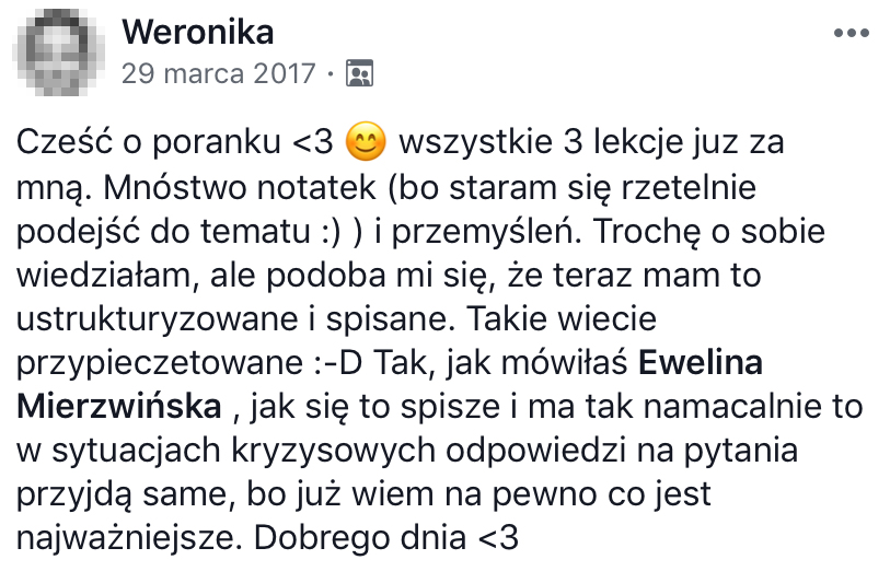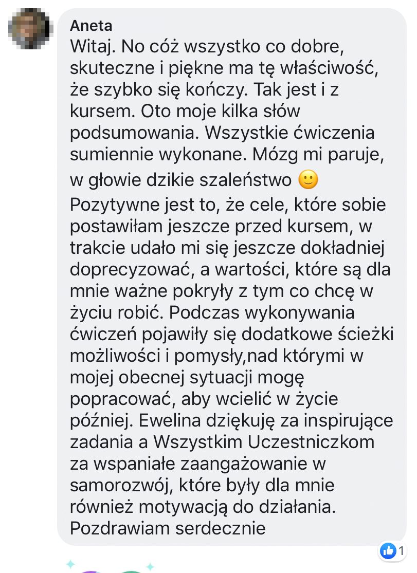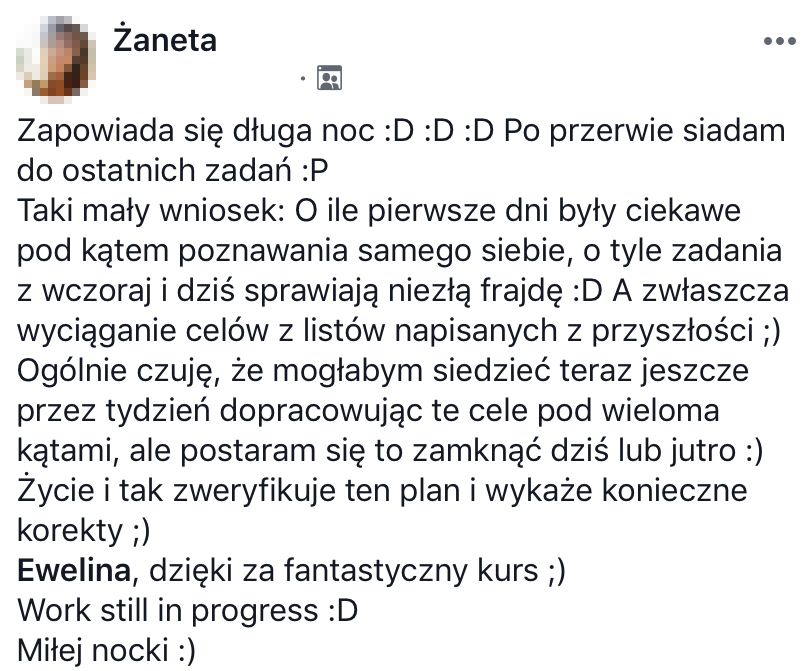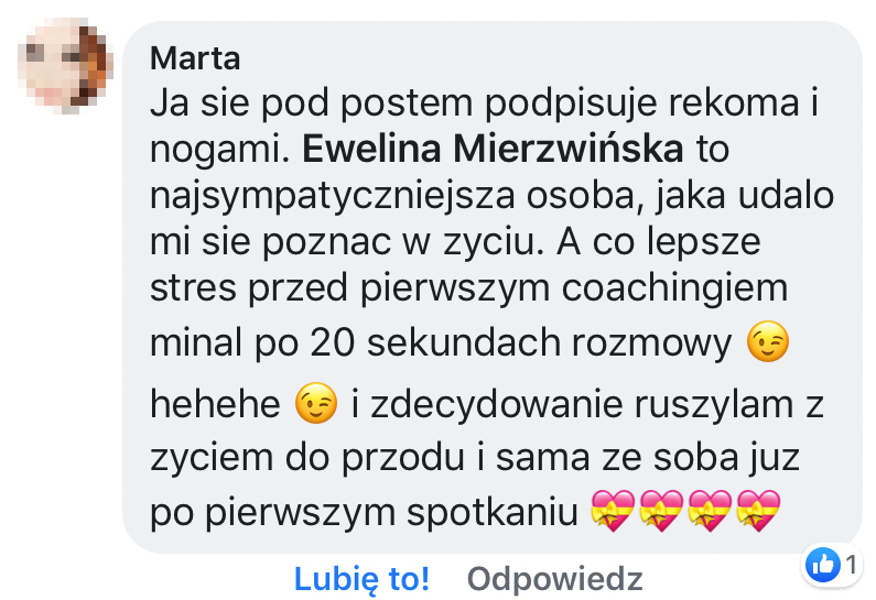 Jestem prawnikiem, certyfikowanym coachem, autorką, blogerką. Od blisko dekady prowadzę własną firmę i w ciągu tych 10 lat przeszłam drogę od zdobywania pierwszych drobnych zleceń, przez zbudowanie agencji social media, aż do skupienia się na pracy jako coach, autorka rozwojowych narzędzi, ebooków i książek oraz mentorka kobiecych biznesów online.